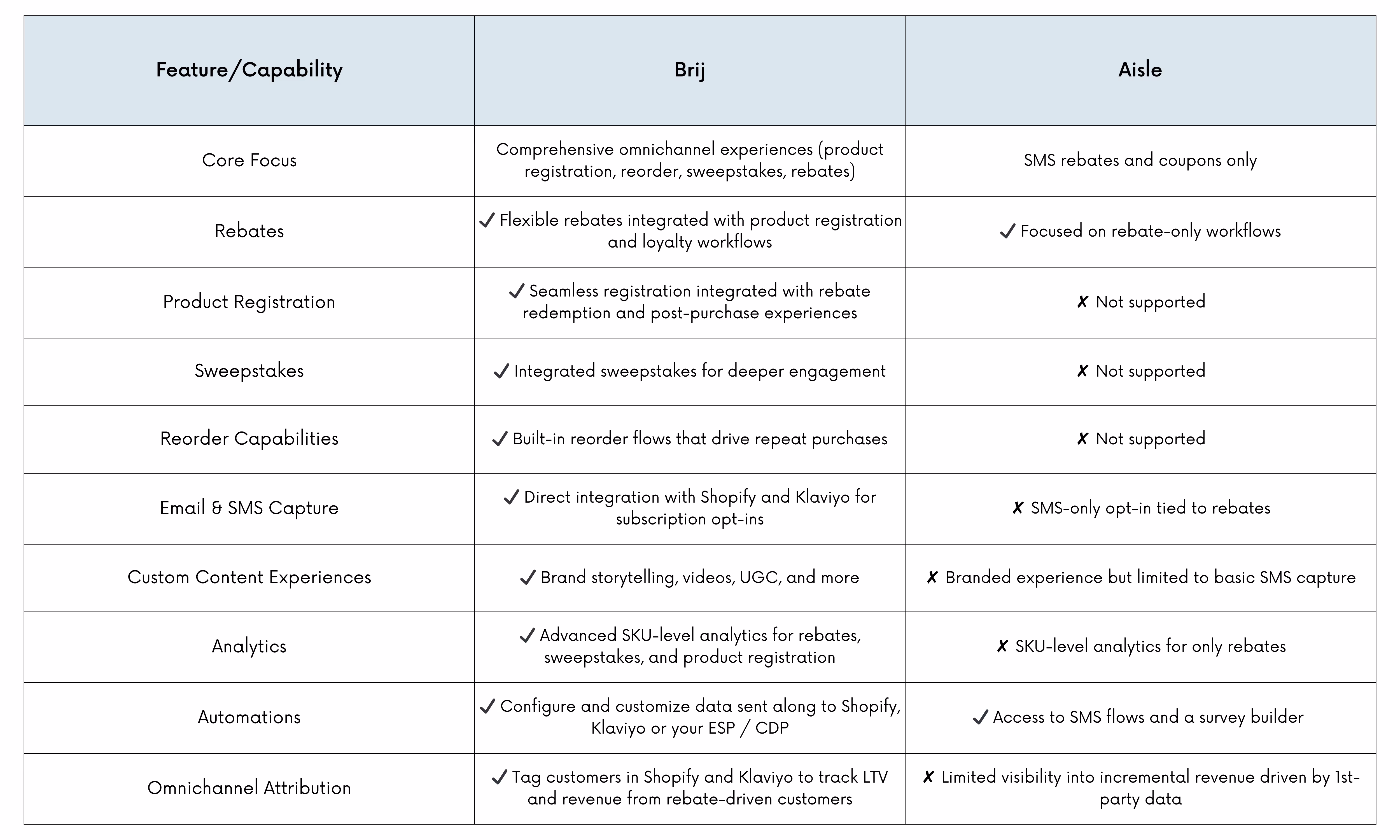 Brij is more than a rebate tool—it’s a platform designed to help omnichannel brands create seamless, personalized, and ROI-driven customer experiences. Whether you’re looking to streamline workflows, capture actionable data, or build meaningful customer relationships, Brij is the clear choice over Aisle.