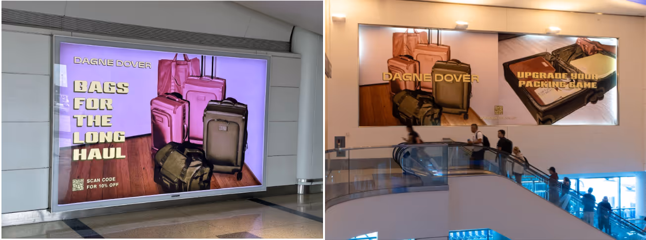 Brij reforms OOH advertising by integrating digital touchpoints into street-level and transit ads. In cities where Wi-Fi is widely available within mass transit systems, a Brij experience enhances consumers’ interaction with ads. Street-level wild postings, bus shelters, and airport placements are prime locations for Brij’s interactive ads. Our collaboration with Dagne Dover at major US airports exemplifies the effectiveness of this approach. With strategically placed ads at boarding gates, travelers can scan QR codes to explore Dagne Dover's new luggage collection. The Brij experience tied to the Dagne Dover ads also creates an opportunity for the brand to track attribution. In this example, consumers provide their email in exchange for a unique discount code to purchase Dagne Dover luggage. This enables the Dagne team to see which ads are performing best and provides an enhanced brand experience to the consumer interested in their product.