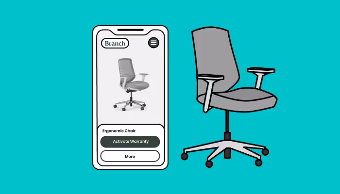Branch’s chairs are delivered with inserts that prompt new buyers to register for their multi-year warranty (up to 10 years in some cases). Buyers scan a QR code and are directed to a simple mobile registration process.